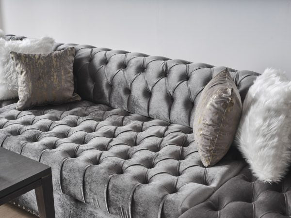 Fabulous and chic, this Sectional Sofa is an updated take on Glam Hollywood. The rich velvet upholstery is soft and smooth to the touch, and button-tufted diamond stitching adds an extra sophisticated look to the design.