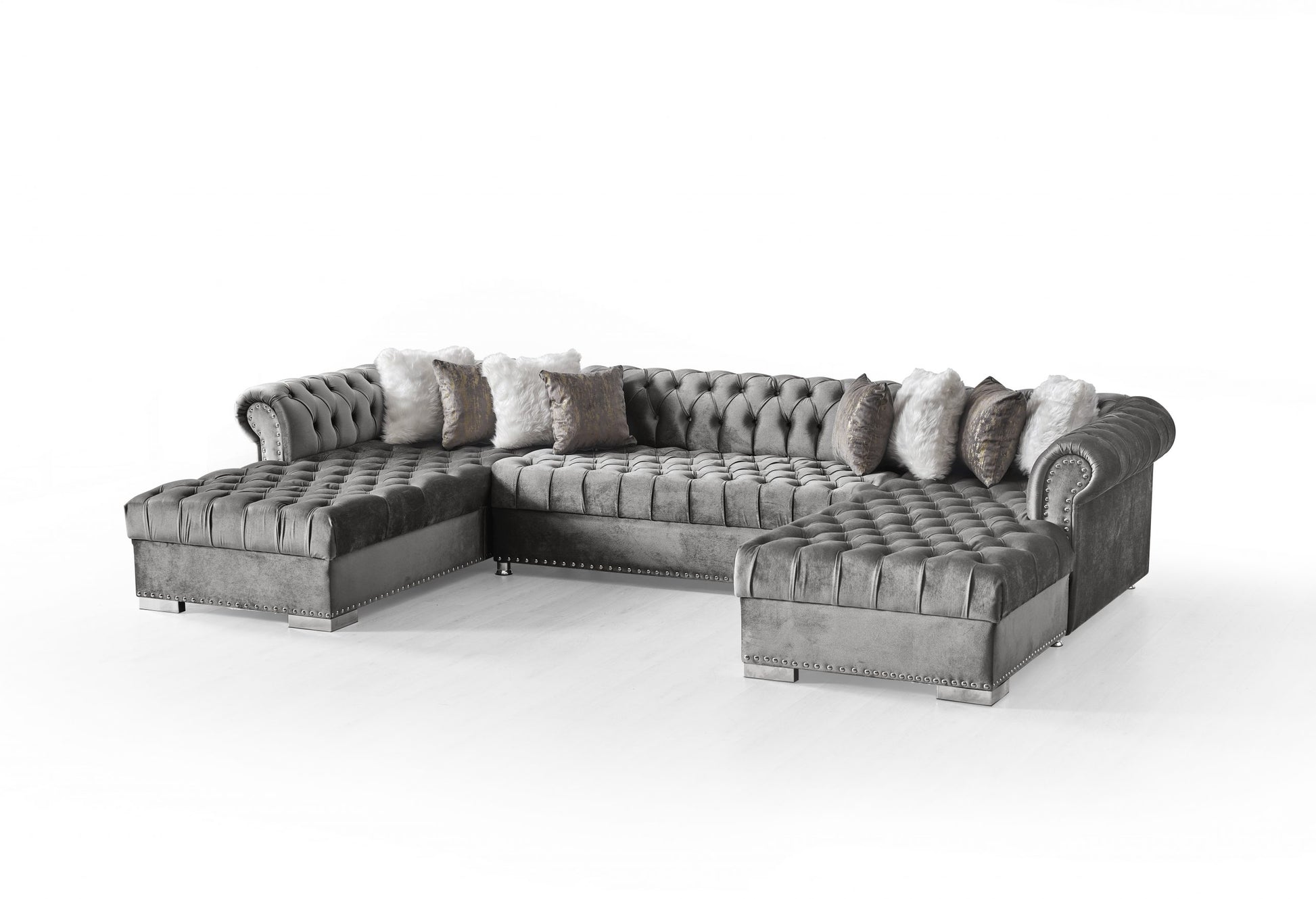 Oversized chaise lounges on both sides are perfect for putting your feet up while you enjoy a movie. This extraordinary piece is designed in a U-shape which will provide enough seating for all your family members and is covered in a tufted, soft plush upholstery.
