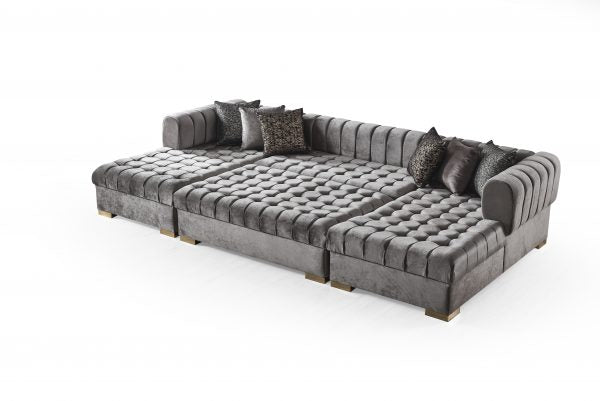 Mariana Collection is our most mesmerizing, luxury double chaise sectional boasting a fusion of contemporary and classic style. Grab a friend and get comfortable on this beautiful piece from Ariana Collection velvet three-piece sectional sofa.